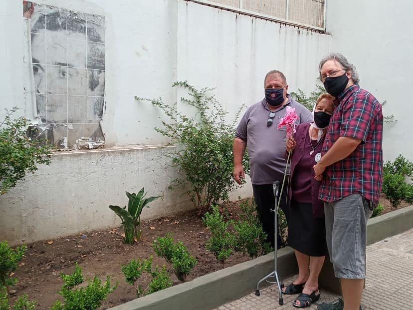 “Unos días antes me llamó Carmen, vecina de Boedo de 96 años, que no salió en toda la pandemia, que no tiene vida en la calle por se cuida y la cuidamos mucho, ni para las fiestas la vimos, y con muchísimo esfuerzo bajó y la llevamos hasta Boedo entre Moreno y Belgrano. Ahí hay un hotel, de mano izquierda, donde estaba Jorge al momento de su secuestro junto a su compañera. Hace un tiempo pusimos una baldosa en ese lugar y en una plaza seca que hay en la esquina habíamos hecho una imagen viva, como un collage en papel y fotos que forman su cara. De hecho tenemos que restaurarla porque le dio mucho el sol con el paso del tiempo. Ella quiso ir a llevarle flores. Tuvimos que poner el auto de una forma para que pueda bajarse cerca de la vereda y dar unos pasitos hasta llegar a la imagen, luego volver al auto e ir hasta la baldosa y hacer lo mismo. Sumamente emotivo, fuerte, una carga de emociones inmensa y la fortaleza que nos da decir que si ellas pueden cómo no vamos a poder nosotros, como ha sido siempre, cosas que nos hacen recapitular y decir: viste, no podés aflojar nunca. Siguen por el camino de la memoria, la verdad y la justicia, jamás venganza”, dijo a TdB el referente de Flores Solidario y militante por los derechos humanos, Marcelo D’ Ambrosio.