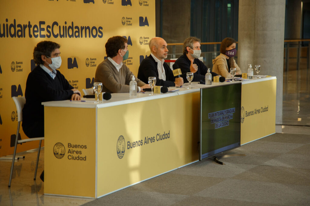 En referencia a este plan anunciado desde la sede del gobierno porteño en Parque Patricios a horas de la conferencia de presa tripartita, Horacio Rodríguez Larreta explicó que “consta de cuatro dimensiones: el bienestar integral, la actividad económica, el transporte y la movilidad, y la educación”, y añadió: “También está guiado por cinco principios, que son la integralidad, la libertad y la responsabilidad, el trabajo en equipo con el sector privado, la perspectiva de género, y las actividades al aire libre”.