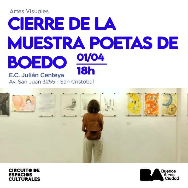 El sábado 1 de abril se cerró la muestra de artes visuales “Poetas de Boedo” con lecturas en vivo y perfomances. Fue en el espacio cultural Julián Centeya sobre la avenida San Juan al 3200.