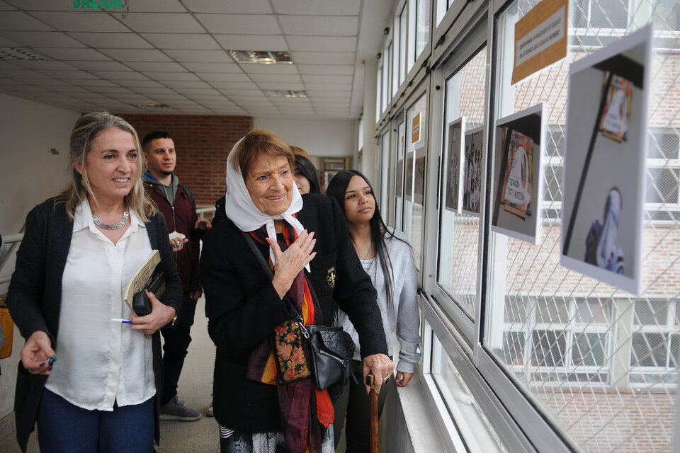 Además durante la jornada la madre de Plaza de Mayo recorrió una muestra de fotos que los alumnos diseñada para recordar la visita de 2012. Allí, en la terraza de la escuela hizo fotos grupales y saludó a los niños que se le acercaban.
