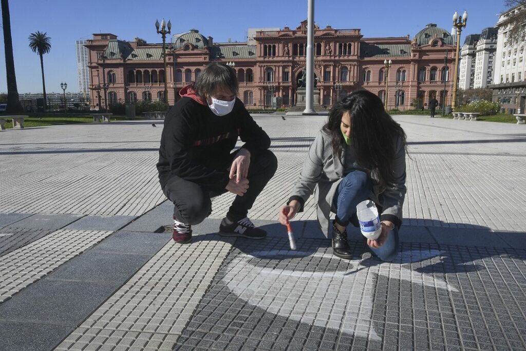 Tras la última marcha opositora a las medidas tomadas en esta cuarentena por el gobierno nacional, los pañuelos blancos pintados en el piso de la Plaza de Mayo -alrededor de la pirámide- habían sido vandalizados por algunos de los participantes en dicha manifestación. Hoy fueron reconstruidos por trabajadores nucleados en Ate-Capital, como homenaje a la lucha de las Madres de Plaza de Mayo que a fines de la década de 1970 se mantuvieron firmes frente al Terrorismo de Estado y el reclamo por la vida de sus hijes.